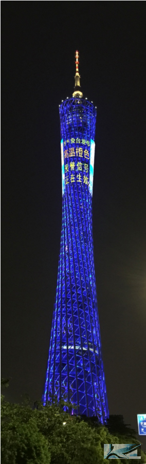 2015714日高溫橙色預(yù)警信號首次在廣州塔LED顯示屏上發(fā)布